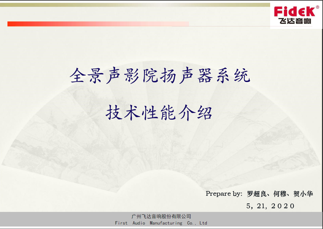 2020年5月21日,由中國電子音響行業(yè)協(xié)會和廣州市電子音響行業(yè)協(xié)會共同組織起草,由廣州飛達(dá)音響股份有限公司和中國傳媒大學(xué)發(fā)起的《全景聲電影還音揚(yáng)聲器系統(tǒng)技術(shù)性能》《用飛行器測量揚(yáng)聲器陣列聲場特性的方法》兩項(xiàng)團(tuán)體標(biāo)準(zhǔn)第一次會議分別在上午和下午召開。