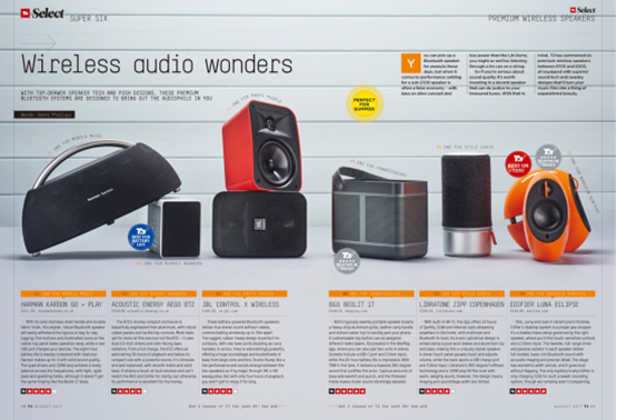 此次《T3》雜志推薦的無線音響還有哈曼卡頓Go+Play、JBL Control×Wireless、B&O BEOLIT17等產(chǎn)品。在雜志的對比介紹中,EDIFIER漫步者魔號E225突破了對傳統(tǒng)音響的所有想象,漫步者設(shè)計師以其不拘一格的創(chuàng)造力,配合漫步者制造工藝上的精雕細琢,完成完美外觀曲線的同時,又保證了這款產(chǎn)品優(yōu)秀的聲音表現(xiàn)力:19mm音圈絲膜軟球頂、釹鐵硼磁體高音單元,帶來細致柔和的音色表現(xiàn);3英寸特種PP盆中低音單元,確保失真更低的同時,也令低頻更具力度。而這一切,只定價150英鎊(國內(nèi)售價999元人民幣),一個被《T3》稱之為“謎團”的價格。