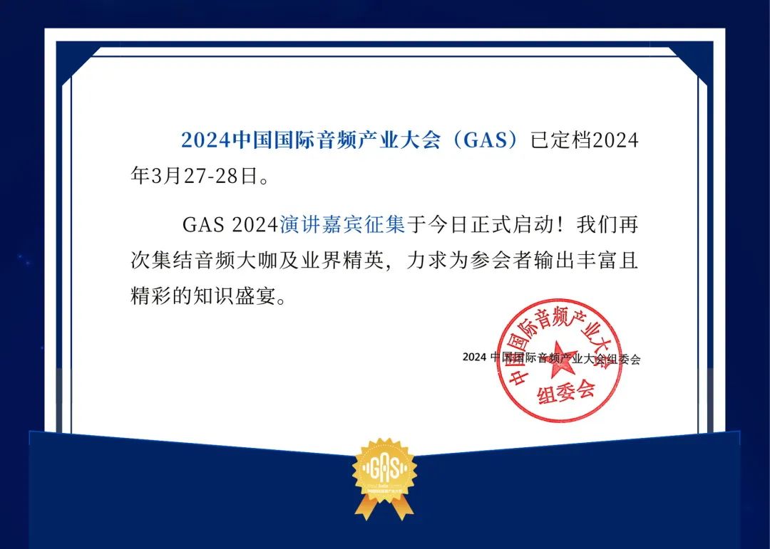 2024中國國際音頻產(chǎn)業(yè)大會(GAS)演講嘉賓征集啟動