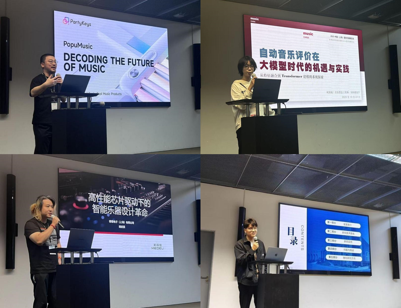 音樂密碼智能樂器總經(jīng)理駱石川發(fā)表了題為《破解未來音樂密碼,AI樂器的展望》的演講,描繪了人工智能如何重塑樂器形態(tài)及音樂創(chuàng)作范式。網(wǎng)易云音樂的音頻音樂算法工程師何其锜分享了《基于音頻大模型的自動音樂質(zhì)量評價》報告,展示了利用AI客觀評估音頻品質(zhì)的前沿技術(shù)。得理電子(上海)有限公司研發(fā)部經(jīng)理謝應(yīng)宸在《高性能芯片驅(qū)動下的智能樂器設(shè)計革命》主題演講中,分析了核心算力的提升如何推動智能樂器在性能與功能上實現(xiàn)跨越式發(fā)展。復(fù)旦大學(xué)博士生茹港徽在《基于深度學(xué)習(xí)的計算音樂學(xué)》報告中,探討了深度學(xué)習(xí)技術(shù)在音樂分析與生成領(lǐng)域的深度應(yīng)用。