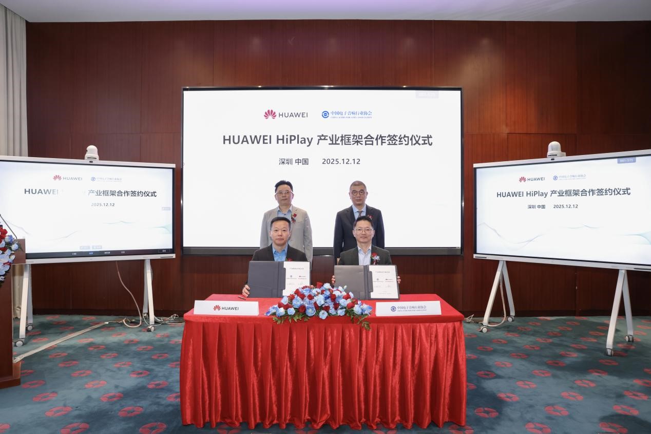 12月12日,中國電子音響行業(yè)協(xié)會與華為終端有限公司在深圳正式簽訂HUAWEI HiPlay產(chǎn)業(yè)框架合作協(xié)議。協(xié)會常務(wù)副會長兼秘書長陳立新、華為終端BG手機產(chǎn)品線總裁鄭平方、華為運動健康軍團(tuán)首席戰(zhàn)略官李昌竹等雙方領(lǐng)導(dǎo)出席簽約儀式。協(xié)會副秘書長姚磊竑和華為終端BG產(chǎn)業(yè)發(fā)展副總裁秦堯在協(xié)議書上簽字。