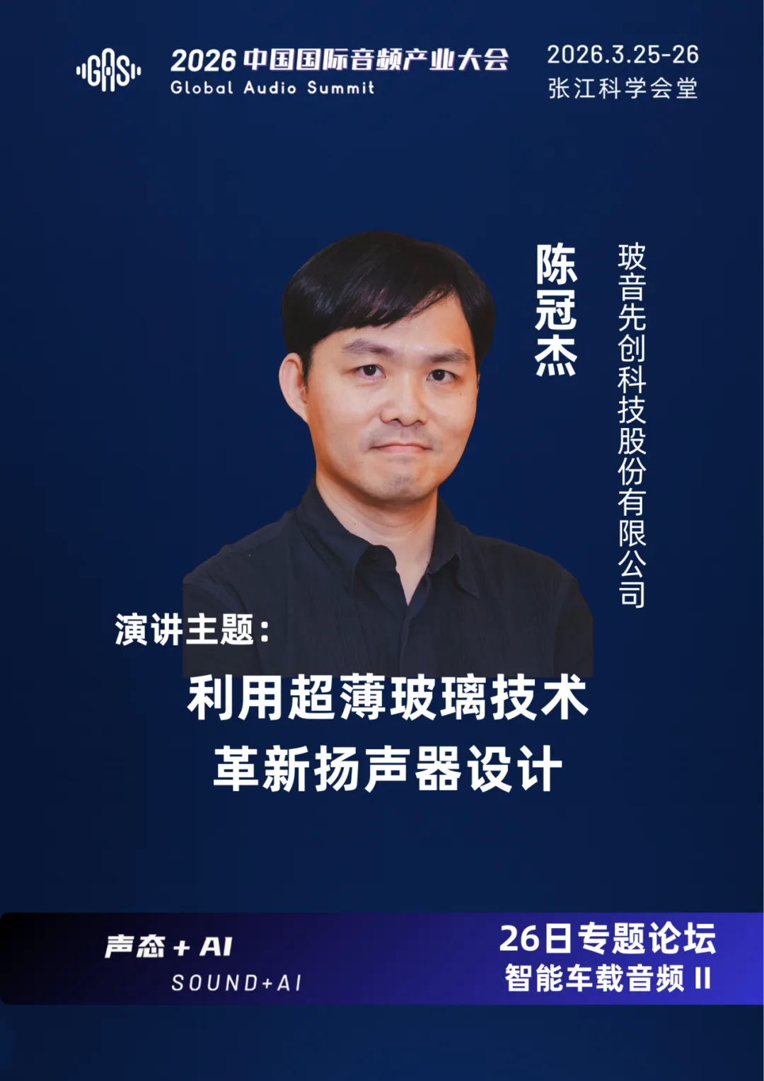 陳冠杰先生,現(xiàn)任玻音先創(chuàng)科技股份有限公司營運(yùn)副總。作為玻璃振膜揚(yáng)聲器的共同發(fā)明者,在聲學(xué)領(lǐng)域擁有超過25年的深厚經(jīng)驗(yàn),無論是擴(kuò)大機(jī)線路設(shè)計(jì)、半導(dǎo)體設(shè)計(jì)、聲音處理算法,還是電吉他效果器設(shè)計(jì)、揚(yáng)聲器設(shè)計(jì)與仿真技術(shù),均具備豐富且領(lǐng)先的專業(yè)能力。