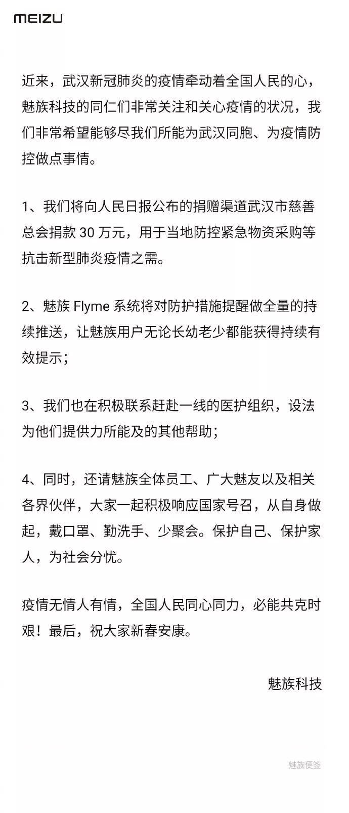 魅族科技向武漢市慈善總會(huì)捐款30萬(wàn)元