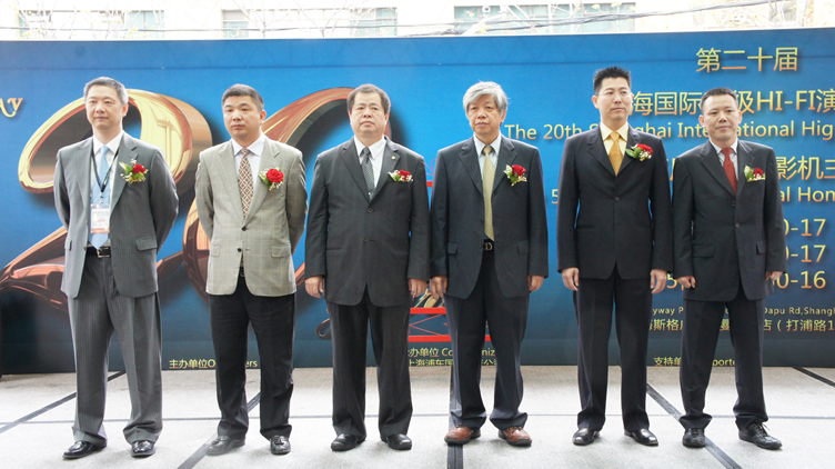 參加本屆上海國(guó)際高級(jí)HI-FI演示會(huì)開(kāi)幕式的嘉賓(從左到右依次為中國(guó)國(guó)際貿(mào)易促進(jìn)委員會(huì)上海浦東分會(huì)朱予崗副秘書(shū)長(zhǎng)、中國(guó)電子音響工業(yè)協(xié)會(huì)陳立新秘書(shū)長(zhǎng)、臺(tái)灣臺(tái)北市電器商業(yè)同業(yè)公會(huì)李松霖理事長(zhǎng)、社團(tuán)法人臺(tái)灣音響發(fā)展協(xié)會(huì)張文錦常務(wù)理事、展商代表(哈曼上海郭副總裁)、中國(guó)電子音響工業(yè)協(xié)會(huì)仇錫洪副會(huì)長(zhǎng))