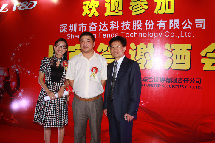 陳立新秘書長受邀出席奮達(dá)上市答謝酒會并和肖奮董事長、謝玉平副總裁合影留念