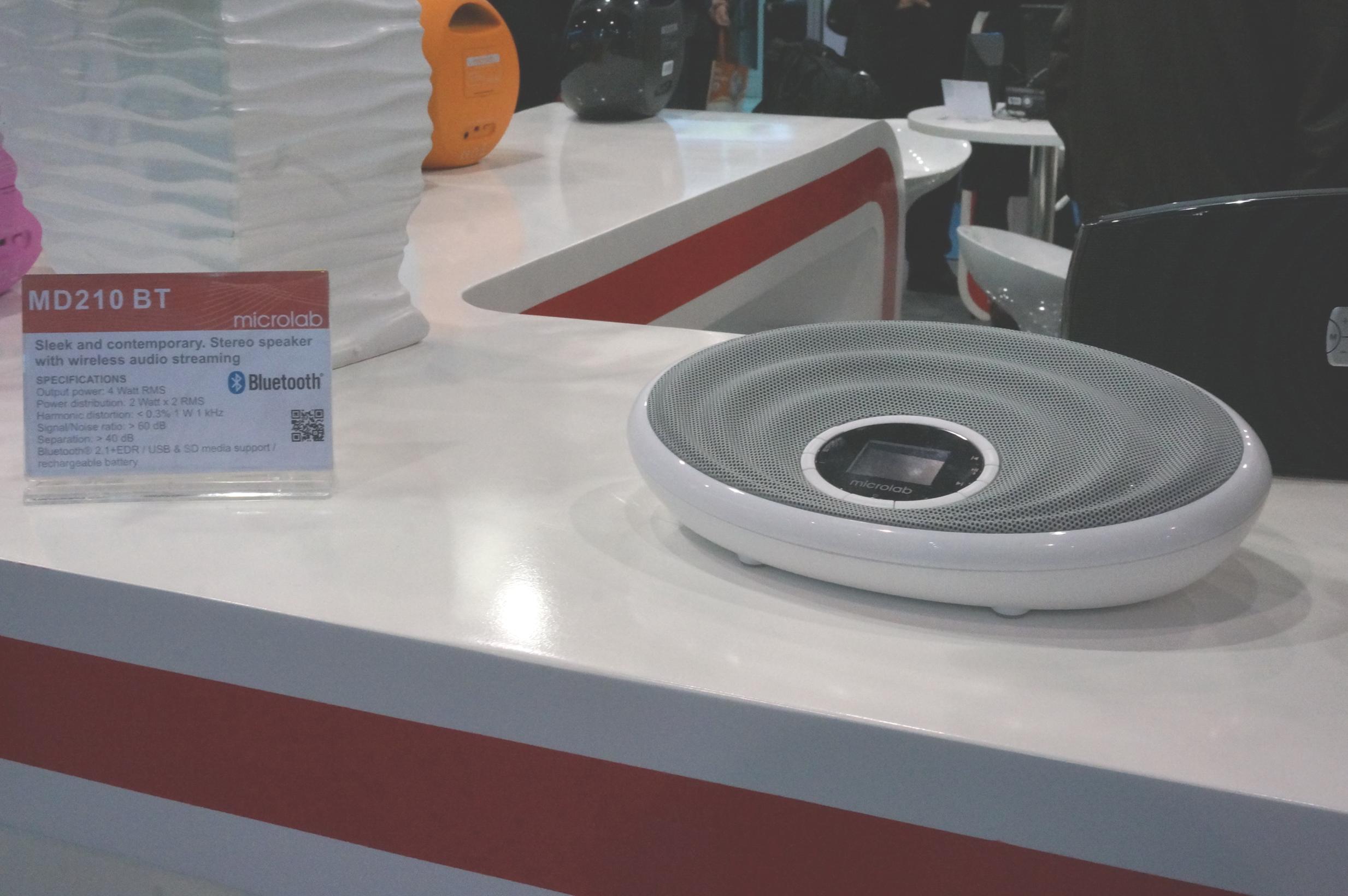 此次麥博展示的產(chǎn)品主打藍(lán)牙,無論是已有產(chǎn)品的升級(jí)版本,還是曝光的新產(chǎn)品,都打上了藍(lán)牙的標(biāo)簽。就連麥博近日曝光即將上市的2.1音箱M200鉑金版也以藍(lán)牙款,亮相于香港展。外便攜藍(lán)牙音箱是另外一個(gè)重要的方向,目前國(guó)內(nèi)市場(chǎng)這類產(chǎn)品競(jìng)爭(zhēng)非常激烈,麥博在本次香港展覽中展示大量產(chǎn)品中也有多款便攜型藍(lán)牙音箱,iMoon和MD212均為藍(lán)牙無線音頻產(chǎn)品,都有多種顏色版本,而且外觀具有時(shí)尚風(fēng)格,iMoon是麥博2012年的一款藍(lán)牙音箱新品,圓月造型設(shè)計(jì)擁有白、藍(lán)、橙等多種奪眼顏色。