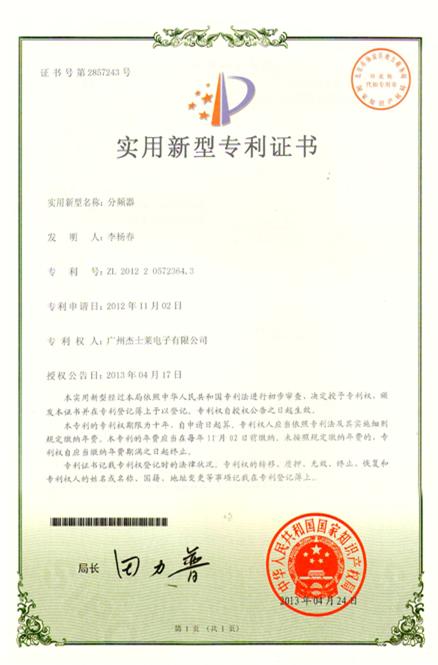 杰士萊電子新獲五項(xiàng)國(guó)家實(shí)用新型專(zhuān)利