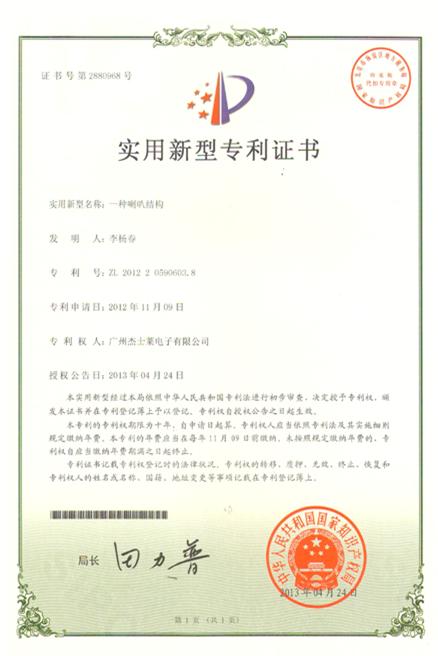 近日,由廣州杰士萊電子有限公司自主研發(fā)的“基于三路分頻設(shè)計(jì)成型的分頻器”、“精確聲像定位及優(yōu)化指向的高音號(hào)角”、“多功能音箱吊裝支架”、“優(yōu)化散熱的喇叭結(jié)構(gòu)”、“具優(yōu)質(zhì)噴涂工藝的音箱箱體”五項(xiàng)創(chuàng)新成果順利通過(guò)國(guó)家知識(shí)產(chǎn)權(quán)局科技成果鑒定,獲得國(guó)家知識(shí)產(chǎn)權(quán)局實(shí)用新型專(zhuān)利授權(quán)。目前,杰士萊電子已將這五項(xiàng)專(zhuān)利成果有針對(duì)性地應(yīng)用于旗下品牌Audiocenter奧雷產(chǎn)品系列之中,有效提升了產(chǎn)品的聲質(zhì)效果,大為提高了產(chǎn)品的市場(chǎng)競(jìng)爭(zhēng)力。