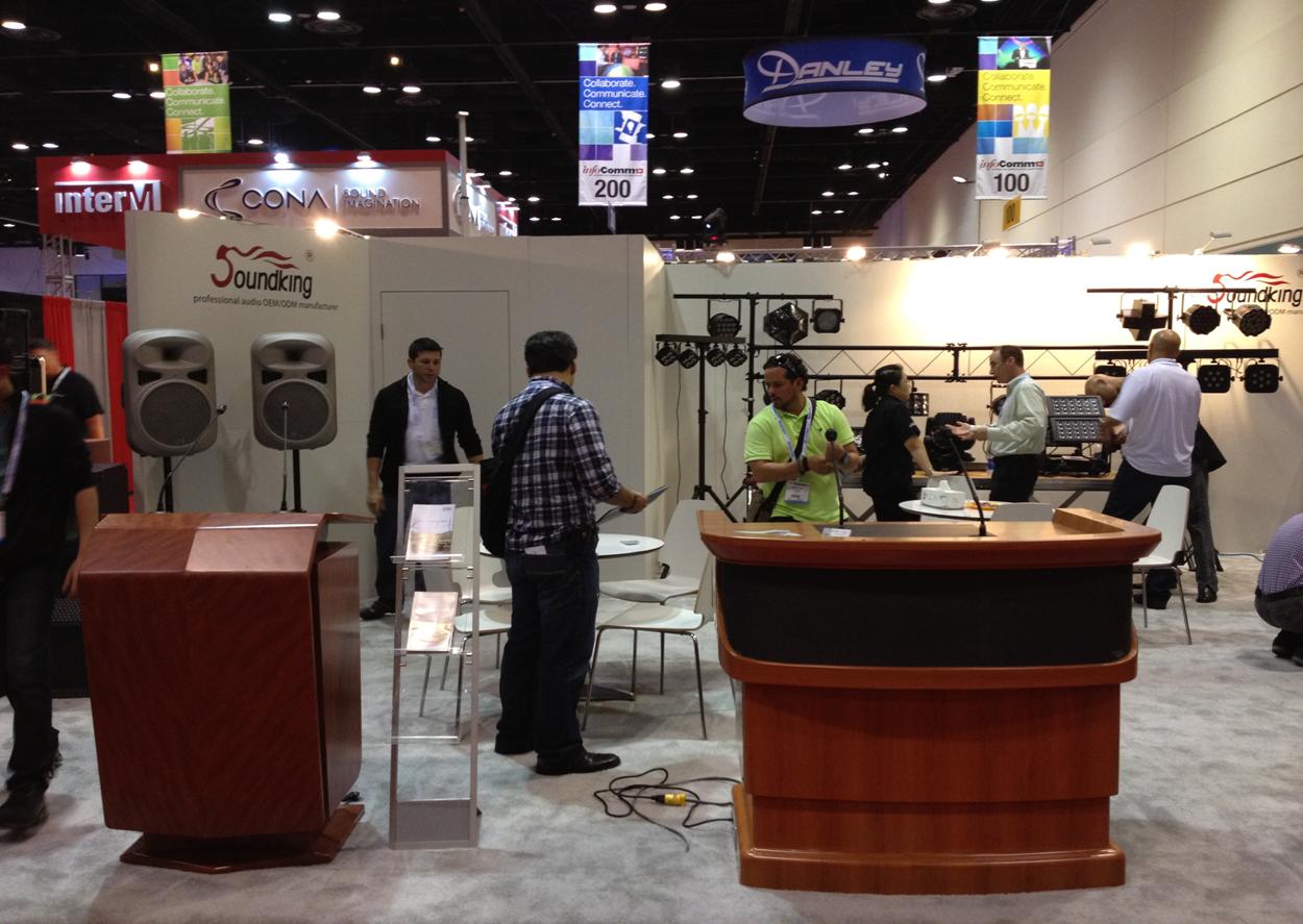 音王集團(tuán)是第一次參加此次展會(huì),在參展前對(duì)該展會(huì)做了充分的調(diào)研,最終決定用SOUNDKING(音王)和CADAC(卡迪克)品牌的升降講臺(tái)、燈光、音箱和支架為參展產(chǎn)品,參展產(chǎn)品更具針對(duì)性,力求取得的效果更強(qiáng)。參展的產(chǎn)品除技術(shù)領(lǐng)先和創(chuàng)新性更強(qiáng)外,結(jié)合當(dāng)前世界環(huán)保理念,將綠色環(huán)保概念與產(chǎn)品的低碳環(huán)保理念緊密結(jié)合,展現(xiàn)Soundking(音王)和Cadac(卡迪克)品牌的社會(huì)責(zé)任與企業(yè)價(jià)值。