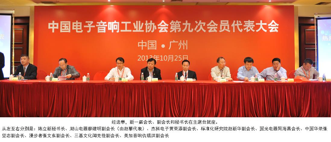 2013年10月25日,秋高氣爽,陽光明媚。中國電子音響工業(yè)協(xié)會第九次會員代表大會在廣州市花都區(qū)順利舉行。