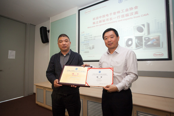 在漢高負責(zé)人詳細的介紹之后,陳立新秘書長也介紹了協(xié)會的概況,并詢問了漢高未來的發(fā)展計劃,并鼓勵漢高以國家政策為導(dǎo)向,抓住機遇,貼近行業(yè),加速發(fā)展自己的企業(yè)規(guī)模。陳秘書長還希望漢高能夠與協(xié)會加強合作,推薦企業(yè)內(nèi)部專家積極參與協(xié)會開展的各項活動,同時也希望漢高能和其他會員企業(yè)一樣為中國電子音響工業(yè)的發(fā)展做出應(yīng)有的貢獻。
