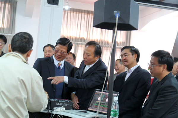 隨后國家人力資源和社會(huì)保障部主管領(lǐng)導(dǎo)等12位嘉賓參與了博士后科研工作站的揭牌儀式并一同參觀了博士后科研大樓、電影還音系統(tǒng)檢測(cè)場(chǎng)所、產(chǎn)品匯展中心,觀看了具有極具創(chuàng)新的產(chǎn)品演示,全面了解了飛達(dá)音響的研發(fā)保障體系以及其在技術(shù)創(chuàng)新上的成果。