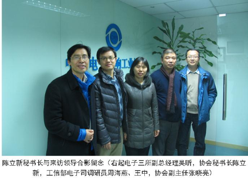 2014年12月17日下午,工業(yè)和信息化部電子信息司視聽產(chǎn)品處周海燕調(diào)研員、王中和電子三所吳昕副總經(jīng)理到訪協(xié)會。協(xié)會陳立新秘書長、黃桅副秘書長等與周海燕調(diào)研員一行開展了座談。