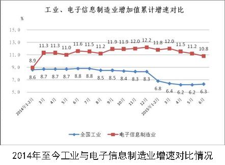 2015年1-6月,我國電子信息制造業(yè)運行平穩(wěn),在各工業(yè)行業(yè)中保持了較高的景氣程度,企業(yè)利潤率穩(wěn)步回升,內(nèi)銷占比持續(xù)擴大,通信設(shè)備行業(yè)增速小幅回暖,中西部地區(qū)保持平穩(wěn)增長。