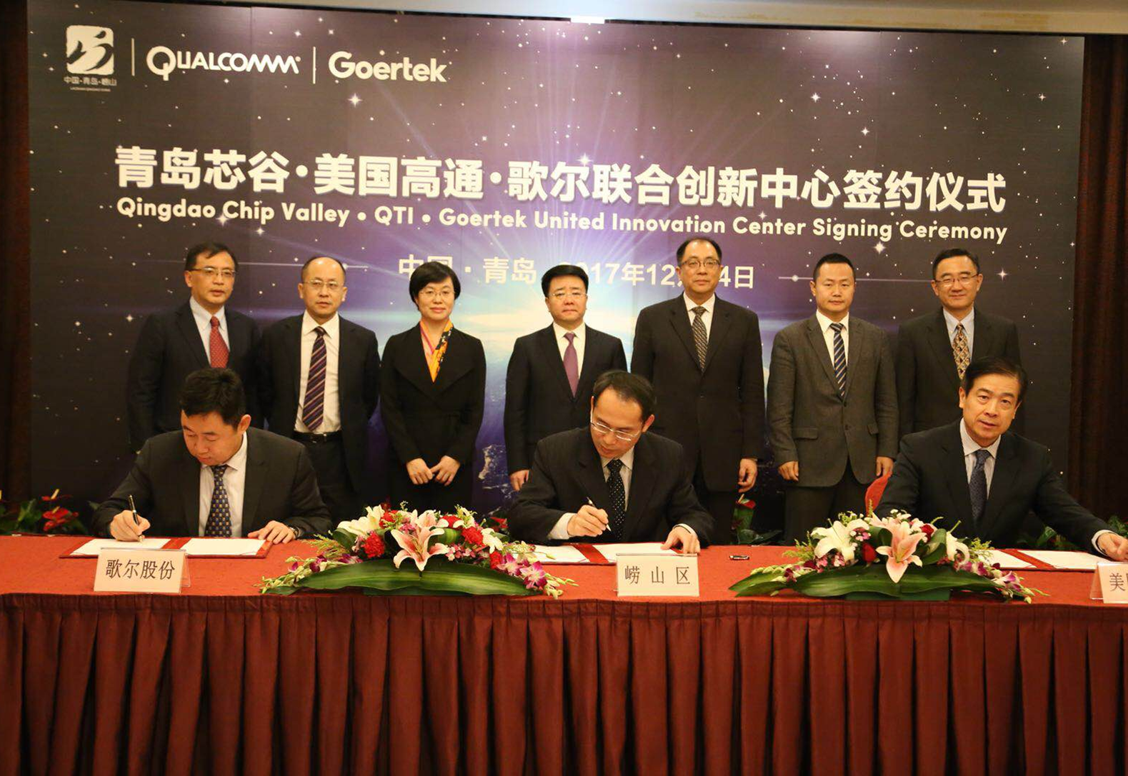 2017年12月14日,青島市嶗山區(qū)人民政府、Qualcomm 和歌爾股份有限公司在青島香格里拉大酒店舉行“青島芯谷?美國高通?歌爾聯(lián)合創(chuàng)新中心”(以下簡稱“聯(lián)合創(chuàng)新中心”)簽約儀式。青島市副市長張德平、嶗山區(qū)區(qū)長趙燕、Qualcomm 中國區(qū)董事長孟樸、歌爾股份有限公司總裁姜龍等代表出席活動并見證簽約。青島市市委副書記,青島市市長孟凡利在簽約儀式后會見 Qualcomm 與歌爾雙方代表,孟市長對雙方在青島的合作表示歡迎和肯定,并期待創(chuàng)新中心能積極帶動青島市在物聯(lián)網(wǎng)等領(lǐng)域的發(fā)展。