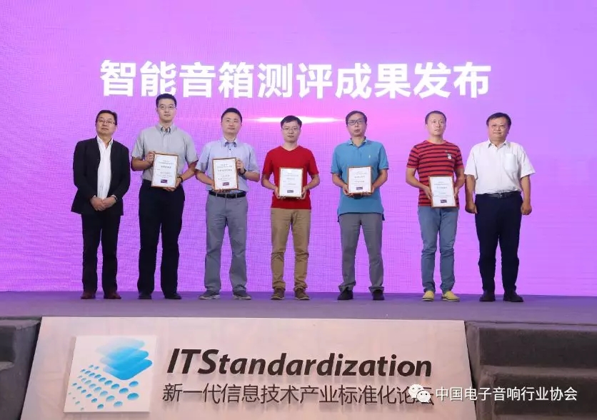 論壇上,電子標(biāo)準(zhǔn)院電子設(shè)備與系統(tǒng)研究中心舉辦了智能音箱測(cè)評(píng)成果發(fā)布,由中國(guó)電子音響行業(yè)協(xié)會(huì)副會(huì)長(zhǎng)、中國(guó)電子技術(shù)標(biāo)準(zhǔn)化研究院副院長(zhǎng)趙新華和中國(guó)電子音響行業(yè)協(xié)會(huì)副秘書長(zhǎng)黃桅上臺(tái)進(jìn)行成果發(fā)布并為獲獎(jiǎng)單位頒發(fā)獎(jiǎng)牌。