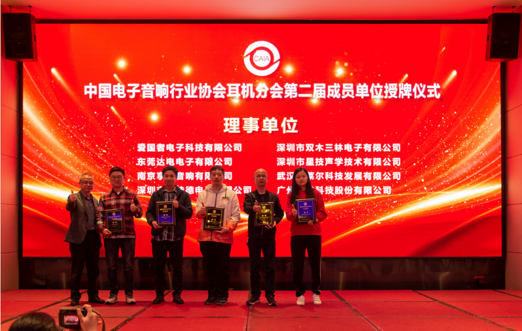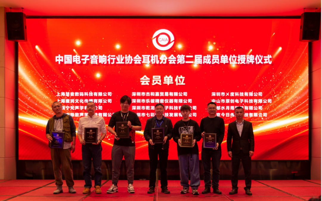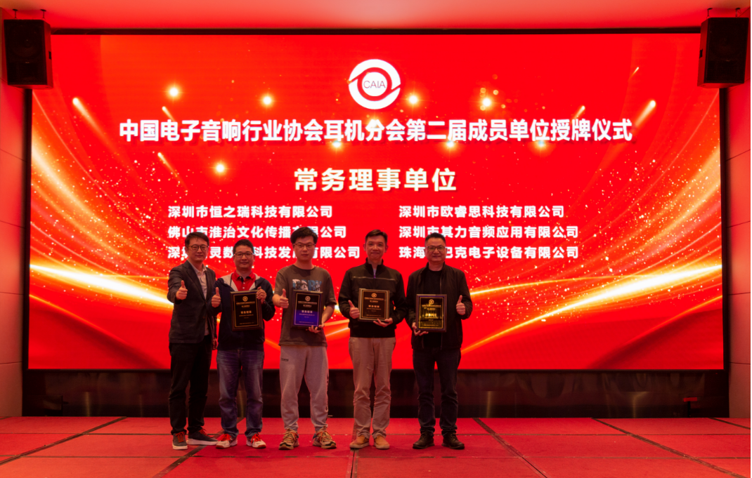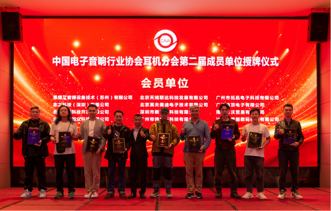 最后,協(xié)會常務(wù)副會長、耳機分會會長陳立新,協(xié)會副秘書長彭泓,耳機分會秘書長陳然和副會長陳允海分別為耳機分會第二屆副會長、常務(wù)理事、理事會以及會員單位頒發(fā)了獎牌。