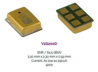 V2S200D是一款寬頻寬、低功耗的專用骨傳導(dǎo)麥克風(fēng),可與麥克風(fēng)配合使用,通過拾取說話者聲音并抑制環(huán)境聲音,以此提高嘈雜環(huán)境中的語音通話質(zhì)量。