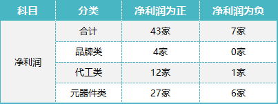 分類來看,品牌類與元器件類上市公司營收表現(xiàn)較好,同比營收增幅分別達到了15.12%和10.05%,4家品牌類上市公司凈利潤上升13.12%,33家元器件類上市公司凈利潤增幅達到了5.58%。代工類上市公司營收增幅約-8.48%