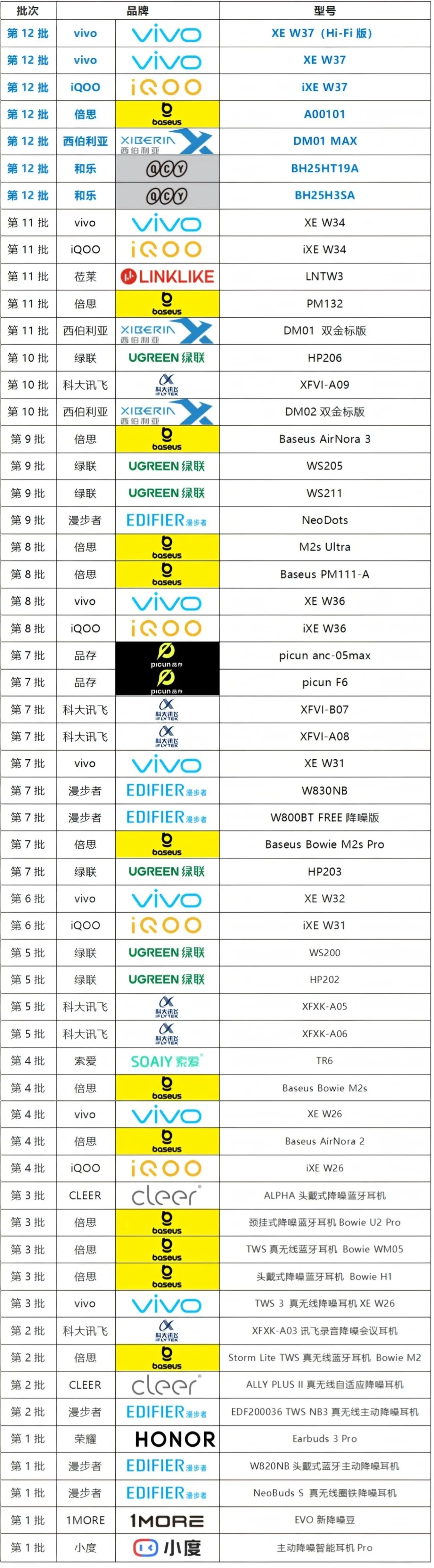 截止至2025年10月21日,第十二批參與“降噪耳機(jī)降噪性能集中評測”的所有產(chǎn)品已由中國電子技術(shù)標(biāo)準(zhǔn)化研究院賽西實(shí)驗(yàn)室完成評測,測試方法依據(jù)T/CAIACN 006-2021《無線降噪耳機(jī)技術(shù)要求和測量方法》,各等級技術(shù)要求依據(jù)《無線耳機(jī)降噪能力測試規(guī)范》。